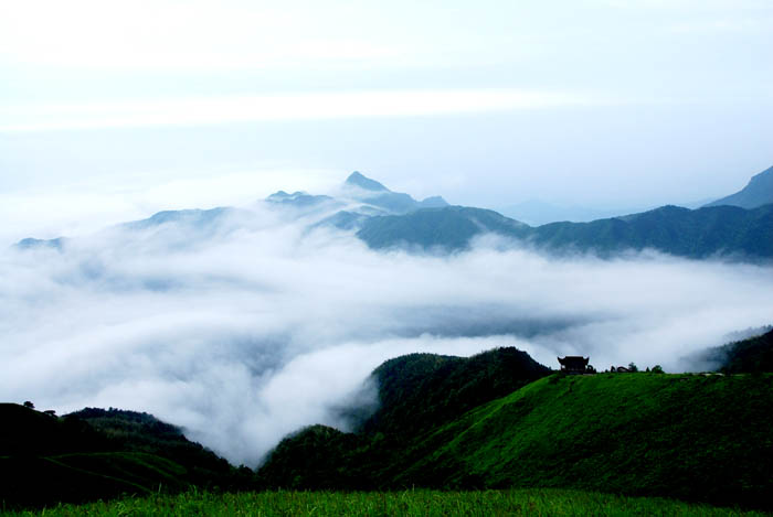 武功山历史上曾与衡山、庐山并称江南三大名山,被冠以"衡首庐尾武功中" 。武功山奇峰罗列。瑰崎壮丽;怪石林立,形态诡异处处深壑幽谷,美妙绝伦;峰峰悬崖峭壁,涌泉飞瀑。站立远眺,村庄、田野尽收眼底,大有"万进而云山齐到眼,九霄日月可摩肩"之意境。早在宋代,武功山就小有名气。